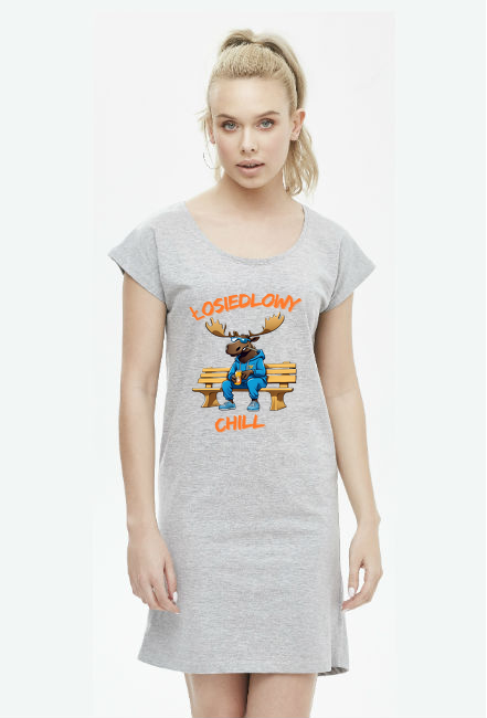 Materiał to miękki i gładki single jersey typu slub. Sukienka wykonana jest z bawełny półczesankowej Ring Spun. Ten typ bawełny charakteryzuje się tym, że do jej przędzenia wybiera się surowiec wyłącznie wysokogatunkowy o długich, cienkich oraz bardzo wytrzymałych włóknach.
